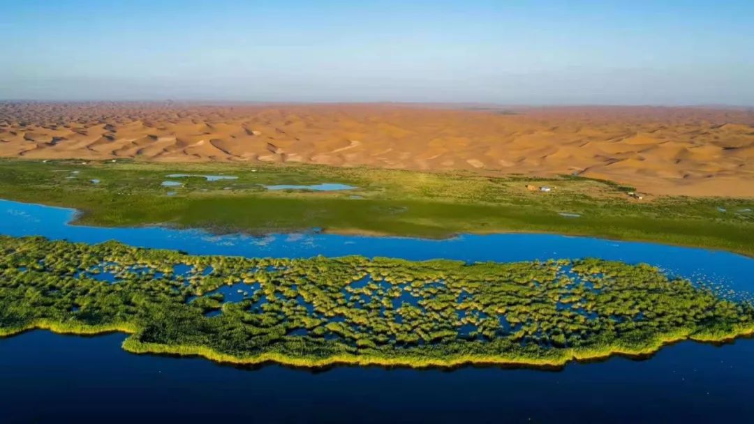 沙漠内大小湖盆多达400余处其中,约200余个湖盆有积水湖畔水草丰美、生机盎然