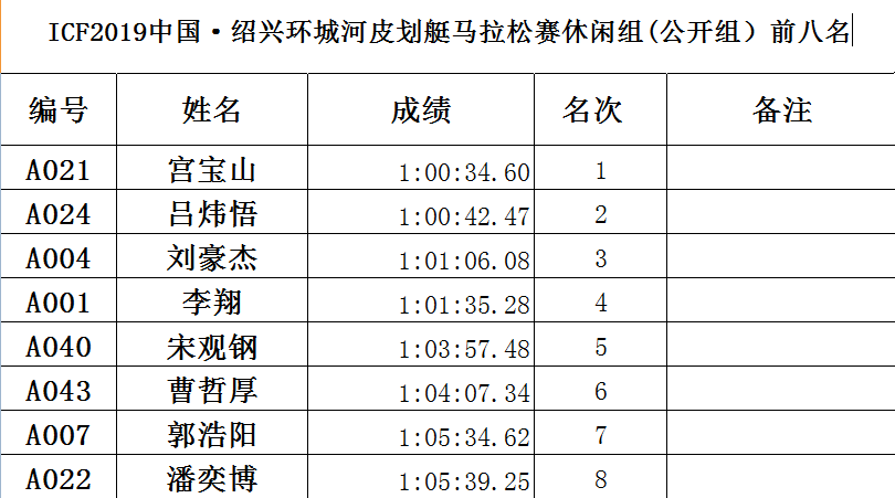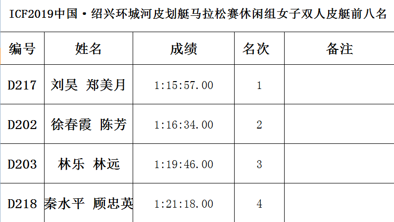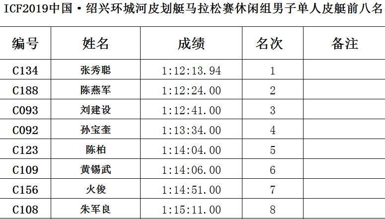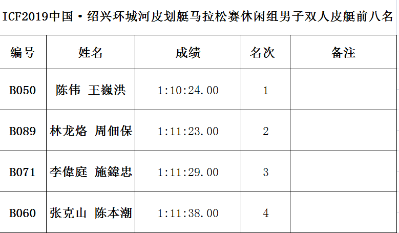 今天上午9点左右,ICF2019绍兴环城河皮划艇马拉松休闲组国际邀请赛在绍兴文理学院河西校区传信桥区域举行开幕式,休闲组比赛是ICF皮划艇马拉松世锦标赛暨亚洲锦标赛的重要配套活动之一,有来自西班牙、韩国和委内瑞拉等20多个国家和地区的300多名运动员参加角逐,赛道是环城河一圈12.5公里。赛事分为五个组别,公开组、男子双人艇、男子单人艇、女子双人艇和女子单人艇。经过激烈争夺,各组的前八名名花有主。根据颁奖信息统计记录,以组委会最终发布为准。