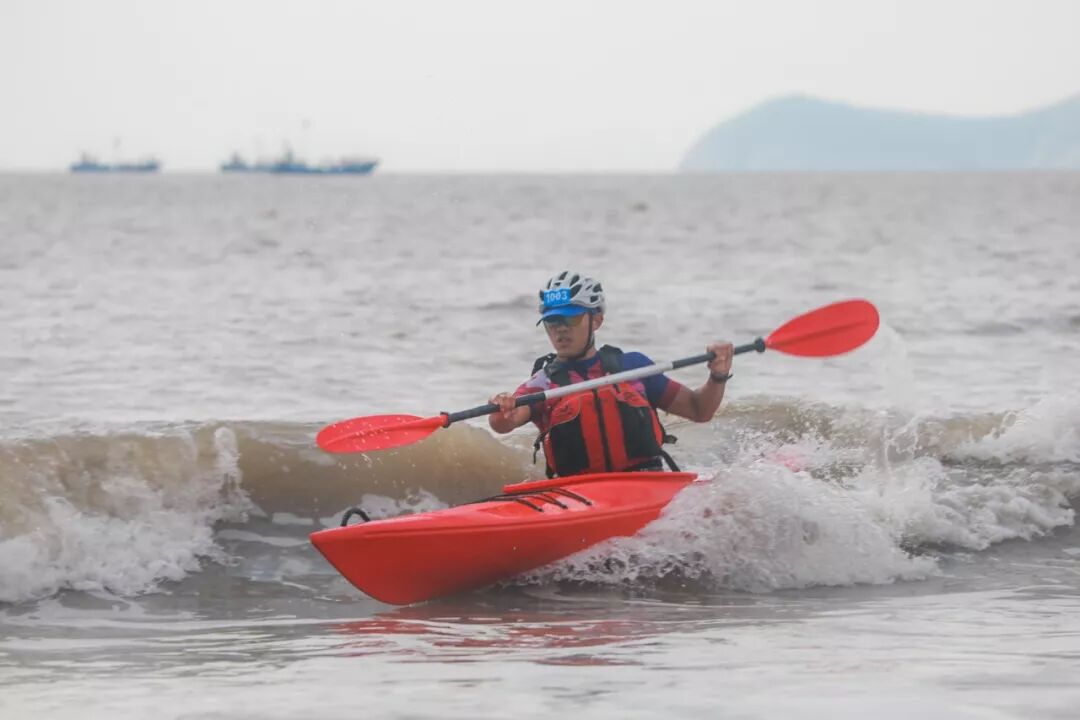 上午8点30分,运动员们竞相出发,一同开桨,水花四溅,打破了水面的平静。在完成8公里皮划艇后,他们又赶紧上岸,继续完成42公里山地车骑行和11公里越野跑项目。