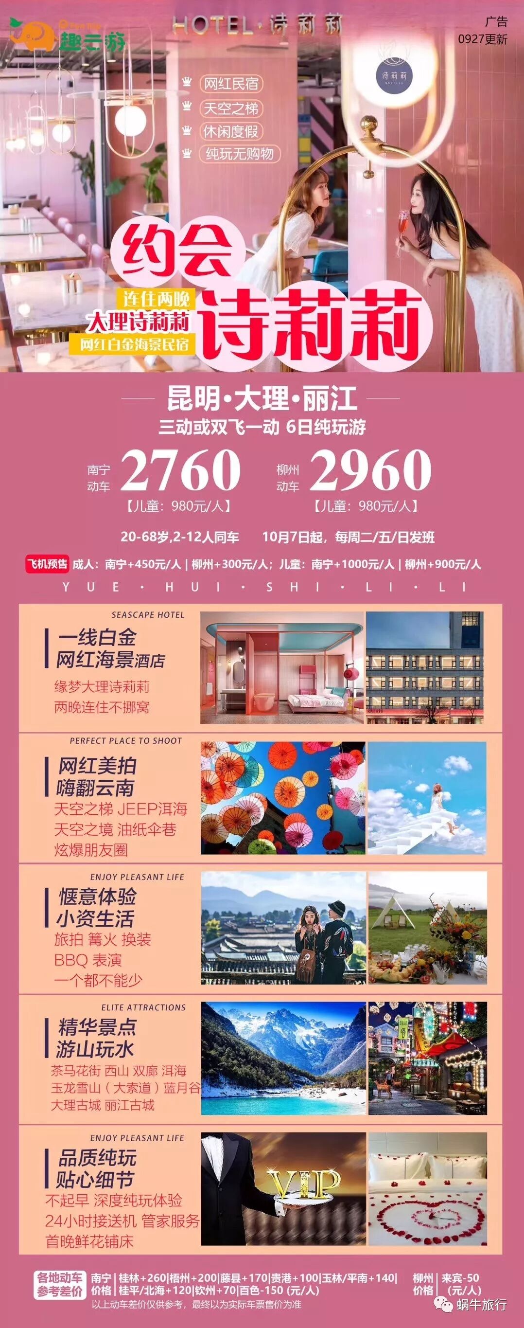 南宁动车:2760元/人,儿童:980元/人柳州动车:2960元/人,儿童:980元/人