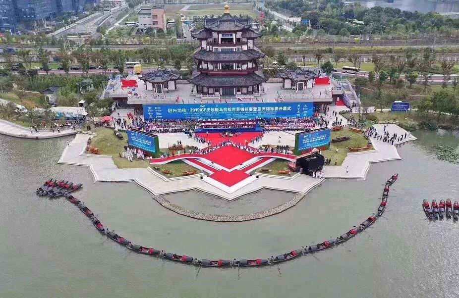 10月16日下午,2019ICF皮划艇马拉松世界锦标赛暨亚洲锦标赛开幕式在迪荡湖公园莲花阁举行,共有来自54个国家和地区的近900位运动员、教练员、裁判员参加这项“水马”盛会,这是绍兴体育史上该赛事最高规格的一次国际性赛事。
