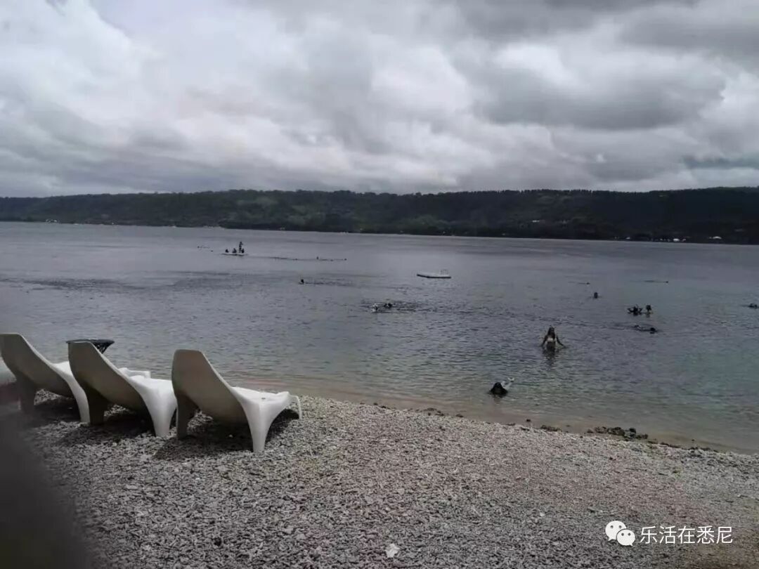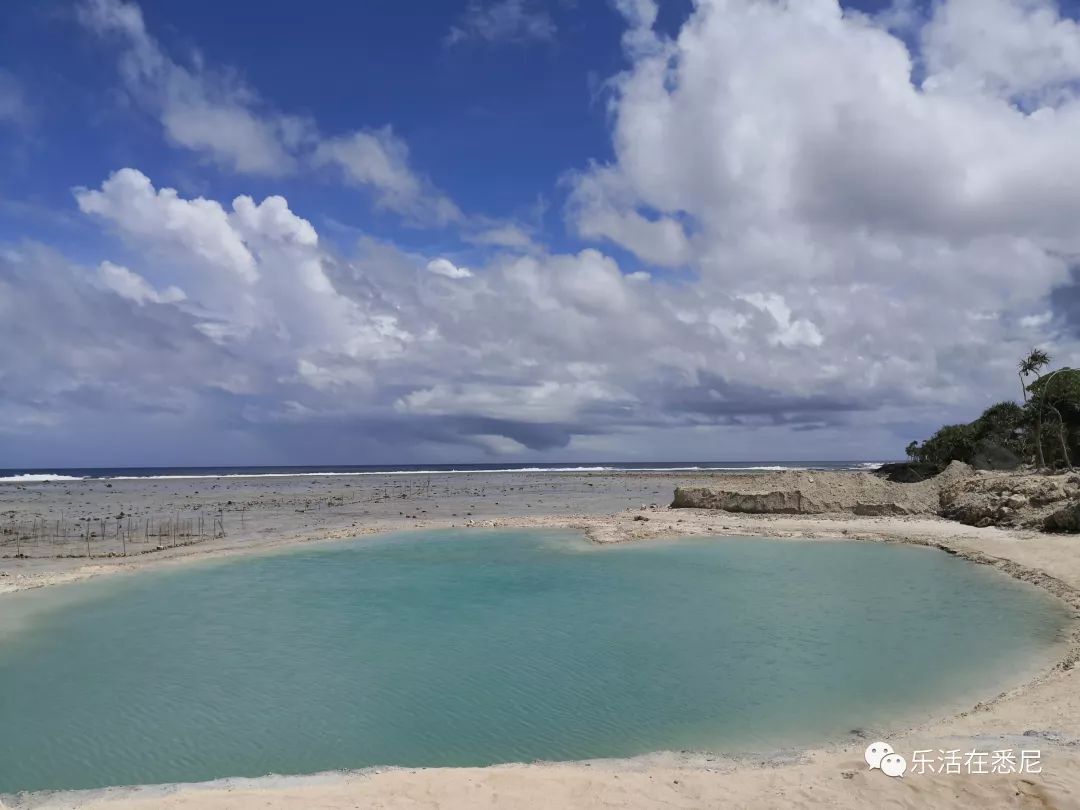 在埃菲特岛东侧的海滩不远,但lagoon本身不在海边,就是一个大水塘。可能是水中含有矿物质的原因,水的颜色是乳白色的。