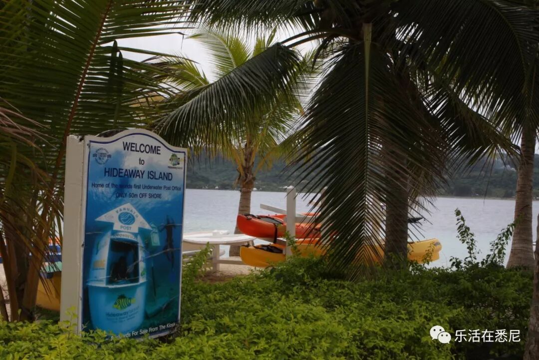 第二天上午,我们去了Hideaway Island,这里距离市中心的距离略微有点远,比较有名的是有个全球第一个水下邮局Post office。如果打出租车单程3000VT,往返6000VT。巴士就是大人300,小孩半价。Hideaway是一个很小的小岛,主要坐轮渡往返。落潮的时候也有陆路相连,可以走过去。