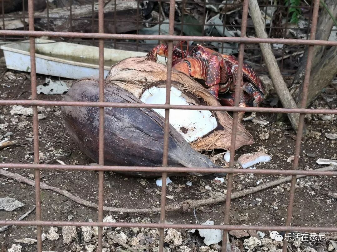 路上看到养在笼子里的coconut crab椰子蟹,看起来更像大龙虾。成年的椰子蟹可以重达1公斤以上。这种蟹生活在陆地的丛林中,主要吃椰肉为生,因此蟹肉有椰子的味道。
