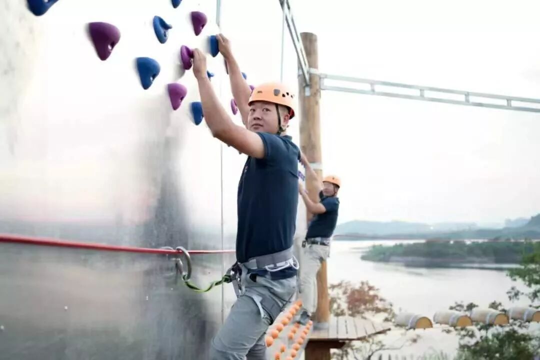 准时出发,车上领队带领大家互相认识,小活动搞起,一路欢声笑语!大约3小时,到达千岛湖,我们先解决午餐,大家可以自备也可以AA千岛湖农家;餐后,我们前往挑战营地,开启一场名为【勇敢】之旅!在教练的指导下,我们穿上装备,开启挑战,一路过关斩将,抵达终点!