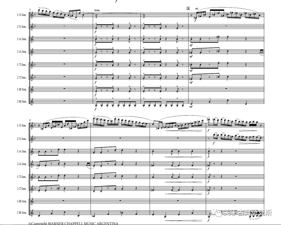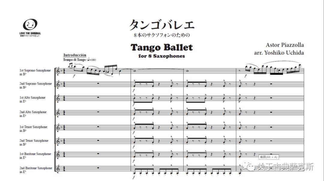 本次推荐的是由内田祥子改编的萨克斯8重奏版本,这首作品也曾被改编为中音萨克斯与钢琴或者乐团伴奏版本。改编为萨克斯,萨克斯独特的节奏表现力和音色与感情的多变更能表现出探戈与芭蕾舞曲风格相融合出的一种特殊音乐性。内田祥子说:“每个部分都有一个独奏声部,能充分表现出这是一部激情和悲伤并存的作品,这才真正的皮亚佐拉。”