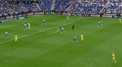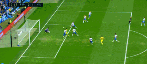 虽然说是客场作战,但是开场之后比利亚雷亚尔大有反客为主的态势。客场作战的比利亚雷亚尔依靠着前场逼抢对西班牙人的防线造成了非常大的威胁。比赛第16分钟,西班牙人的防线被打穿。