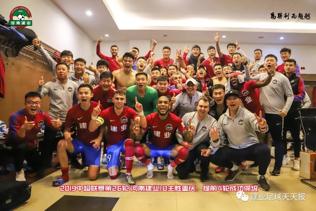 10月20日19:35,2019中超第26轮河南建业主场迎战重庆斯威。由于两队赛前积分排名接近,也是河南建业保级的关键战役,故此,双方都必争三分。比赛开始后,双方进行了精彩的对攻战,但均没有获得进球良机。上半场比赛结束,0-0,下半场易边再战,第56分钟,凭借外援卡兰加的进球,建业取得关键性进球,至此,河南建业主场1-0战胜重庆斯威,全取三分,并提前四轮成功保级。