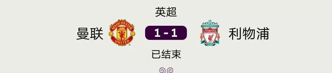 最终曼联1-1战平利物浦。自1984年5月主场1-2输给伊普斯维奇以来,曼联在半场结束时领先的主场联赛仍然保持不败。