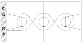 2.考生听到发令信号后,从起点开始按“∞”字绕障碍往返 运球(见附图),左、右手及双手交替运球均可,以人体躯干过 终点线为一次考试结束(通过终点时不得人球分离),记录完成 时间。登记成绩以秒为单位,使用电子表,取一位小数,小数点 后第二位数非“0”时进 1。