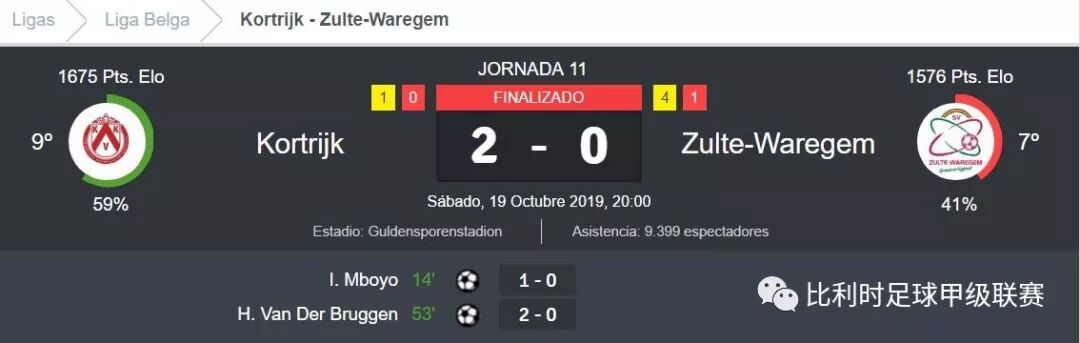 2019/20比甲常规赛第11轮:全面压制 科特赖克2比0击败聚尔特瓦雷赫姆