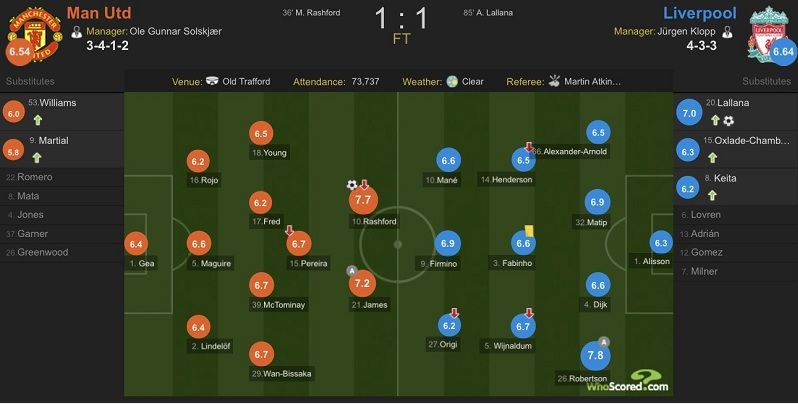 曼联(3-4-1-2):1-德赫亚、16-罗霍、5-马奎尔、2-林德勒夫、18-阿什利-扬、29-万-比萨卡、17-弗雷德、39-麦克托米奈、21-丹尼尔-詹姆斯、15-佩雷拉(94'布兰登-威廉姆斯)、10-拉什福德(84'马夏尔)