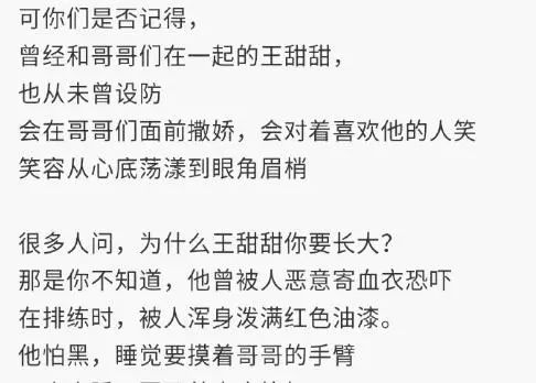 知道为什么他怕黑怕鬼吗?试想一下,十几岁的年龄被寄血衣,被黑粉泼红漆,怎会不怕。确实很多人说,王甜甜变成酷盖了。
