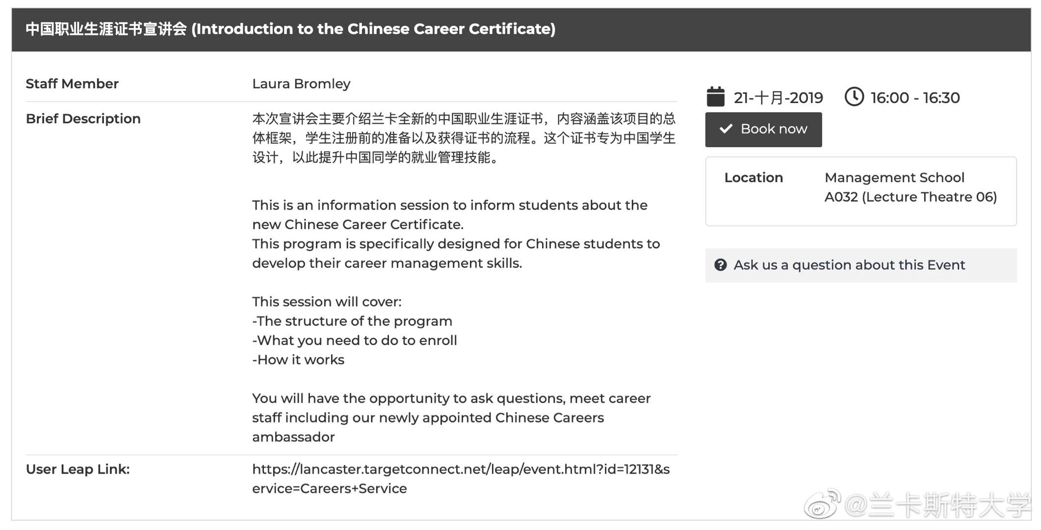 if (!window.__second_open__) { document.getElementById('js_image_desc').innerHTML = "明天下午4点到4点半 管理学院 LT6 中国职业生涯证书最后一次介绍会~~报名链接如下:\x0ahttps://lancaster.targetconnect.net/leap/event.html?id=12131\x26amp;service=Careers+Service".replace(/\r/g,"").replace(/\n/g,"