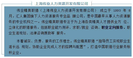 ※伟业精英职猎拥有海量候选人,各行业、各职位均有涉猎,尤其是人事类岗位推荐与招聘能力,上海地区同行业一流。
