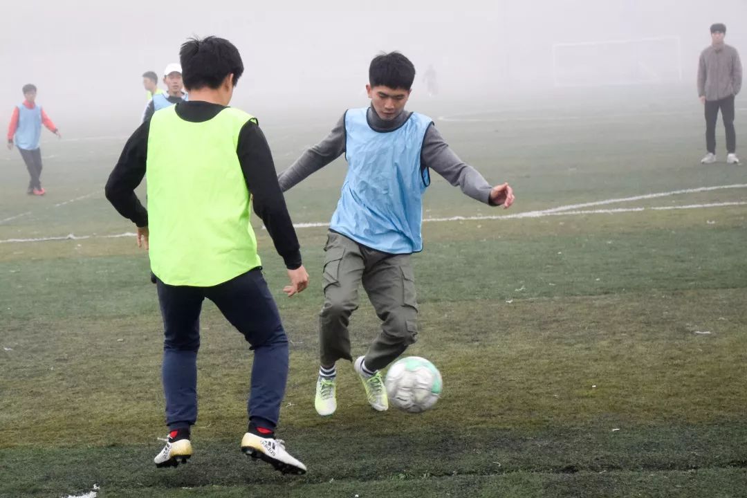 随着主裁判的一声哨响,足球赛正式拉开序幕。整场比赛打得十分火热,双方的攻势此起彼伏。天气虽然冷,但双方球员们的攻势有增无减。在场上争先恐后,来回传球。虽然早上有浓雾,但丝毫不影响球员们的发挥。