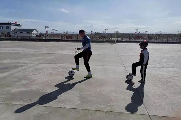 经与古浪县西靖镇教育工作站及富民完全小学、阳光初级中学负责人沟通后,针对西靖镇体育教师和两所中小学学生,两名驻点教练员制定了详细的培训课程,周密安排了训练计划,每天上午对西靖镇16名体育教师进行足球教练员理论课和实践课培训,下午分别对富民完全小学和阳光初级中学的40名学生进行足球专业训练。通过驻点帮扶,提高了西靖镇体育教师的足球专业水平,推广和普及了青少年足球运动,受到了当地学校及教师、学生的一致认可。