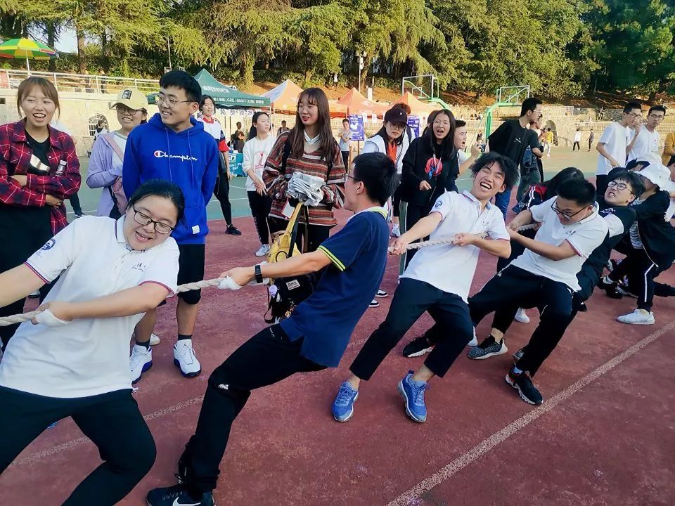 第三局是漫长的。尽管我们一开始抢占了先机,但对手也十分强大,长绳仍然顽固地停在中间,胜负仍然未分。这是最漫长的一次拔河比赛,比赛僵持了至少有十几秒,却仿佛有几分钟那么长。前面的同学几乎要躺倒在地上去;中间的同学闭上眼,也不在乎是否会被拍成表情包了,只管使出全身力量;最后面的同学用绳子将腰围住,奋力后退……碧蓝碧蓝的天空下,奋力拼搏的选手们,周围以嘶哑的声音喊着“123”的群众们,逐渐移动的长绳……时间定格在此刻,我们,胜利了!我们是冠军!