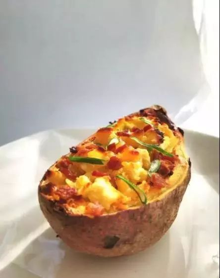 本周厨艺课的主题是火腿奶酪焗薯蓉(USA-twice baked sweet potatoes ),奶酪遇上火腿,躺在软糯的红薯上面,大火烘烤,香气四溢,既甜美,又有营养,一起来度过“舌尖上的新年”
