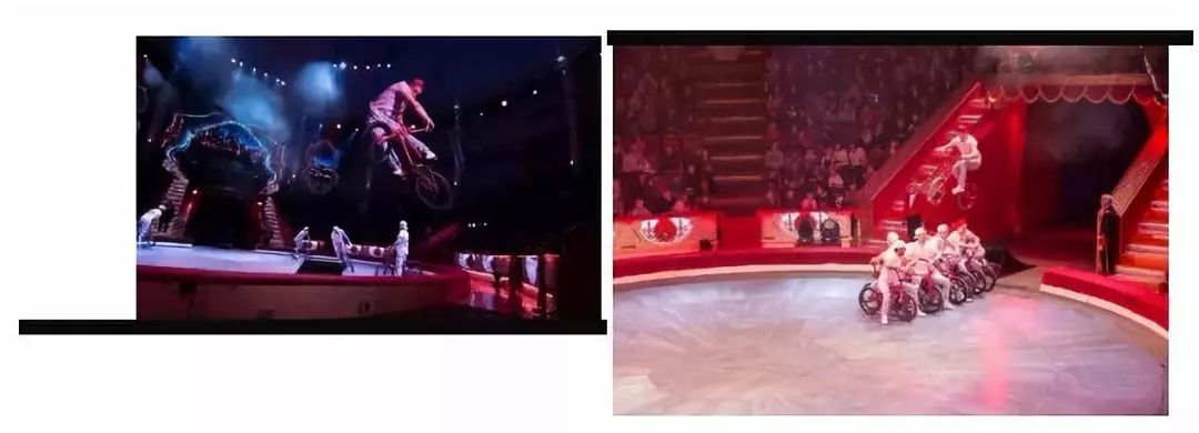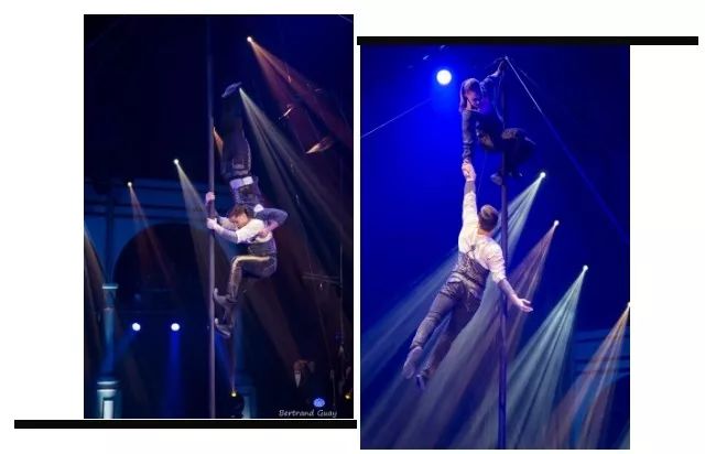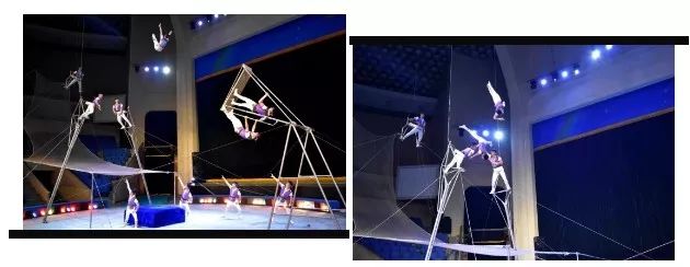 哥伦比亚和德国联合表演的《高空钢丝》节目,是在距离舞台地面十米以上的高度,在横拉的钢丝上完成一些让人难以想到的高度技巧。