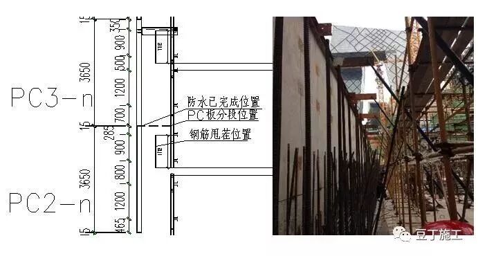 二、预埋件的深化设计,首先要考虑板的分割尺寸,避开钢筋甩茬位置并匹配塔吊的吊重和吊次,方面施工。其次深化以下几个预埋件的大小与位置,1、与止水对拉螺栓固定的内部的预埋件;2、底部和顶部预埋PC板与PC板连接埋件,3、上部预埋PC板与可调斜撑槽钢连接埋件,4、PC板拼缝位置的预埋钢板。通过BIM建模,对埋件埋设位置和连接方式进行二次深化,避免埋件和钢筋的碰撞冲突。三、PC板的加工和养护1、选择专业的预制构件生产厂家,进行原材料的优选,并在合同内详细的明确质量要求;2、PC板加工前,由项目部技术负责人对PC板加工人员进行技术交底,并对预制加工质量要求、注意事项、细节施工方法等进行详细讲解,明确质量标准及验收要求;3、项目部安排驻加工场人员负责PC加工质量,全面贯彻执行施工质量标准,确保预制件加工质量;