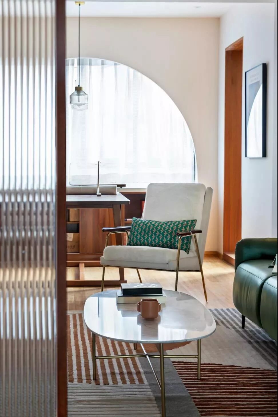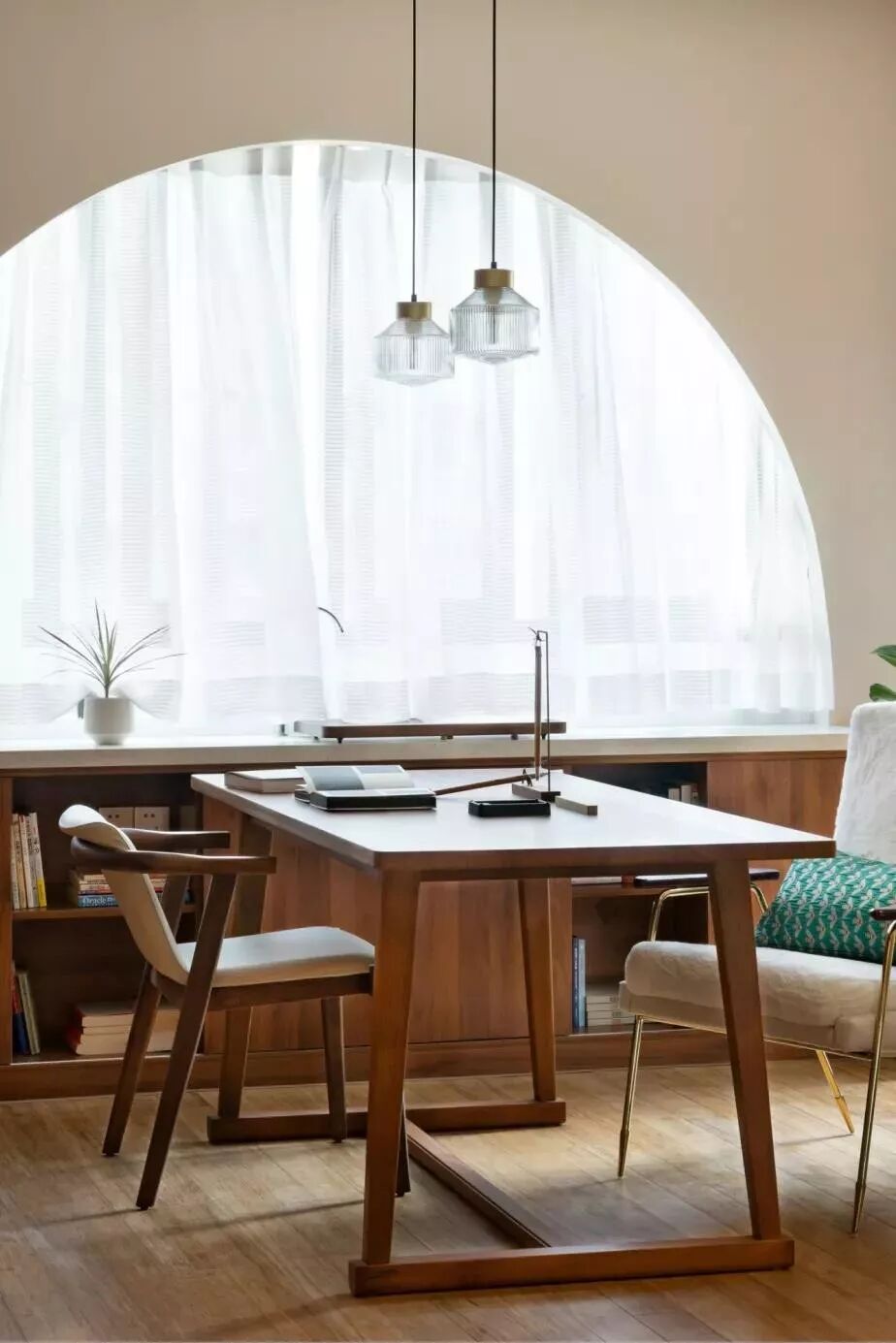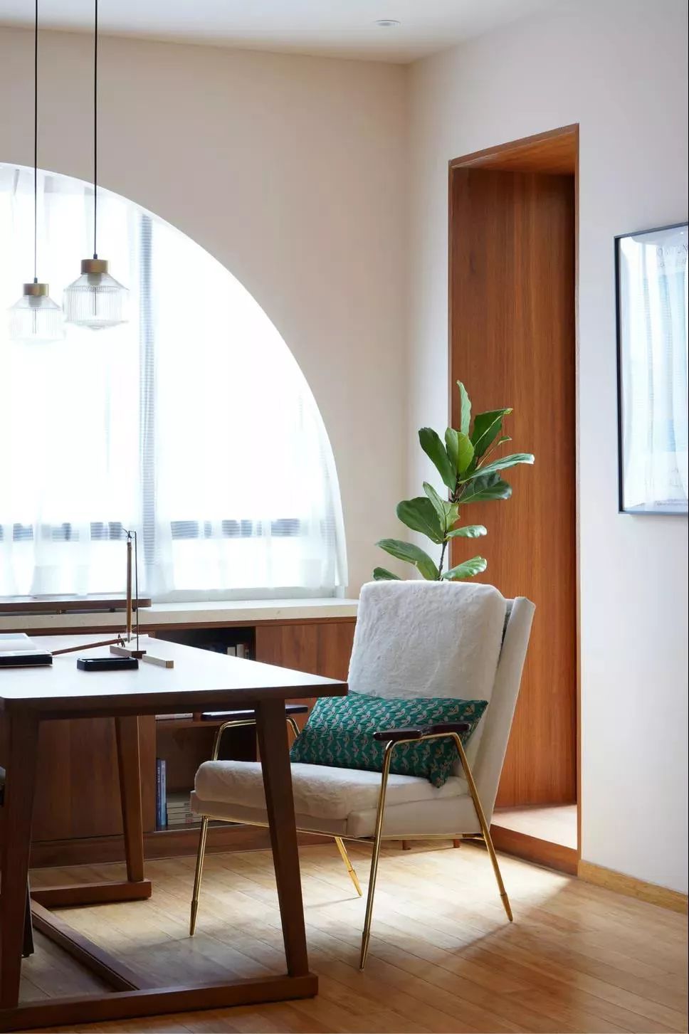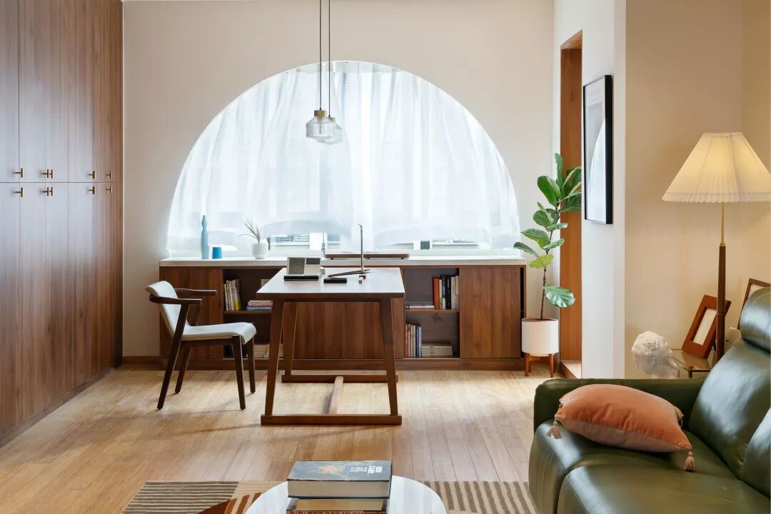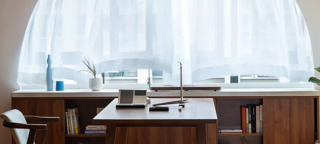 2、北侧阳台打通包进客厅,最大化利用北侧自然光,再利用临窗的采光优势,做成开放式书房;