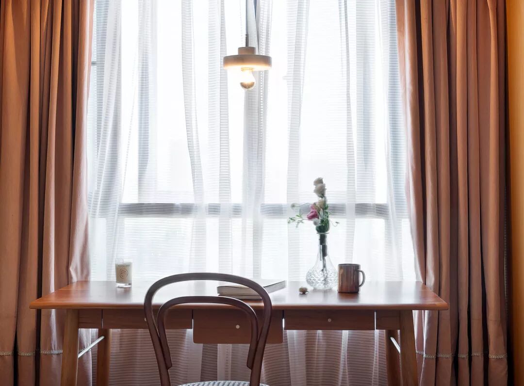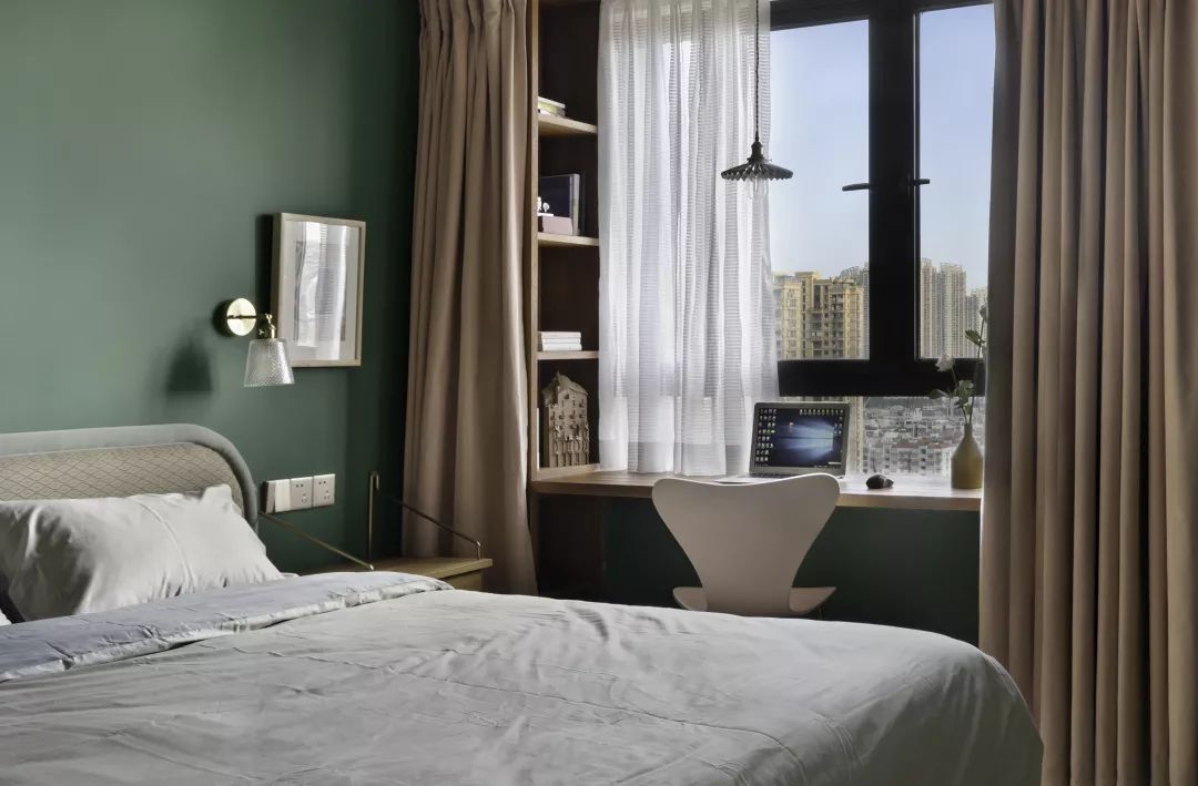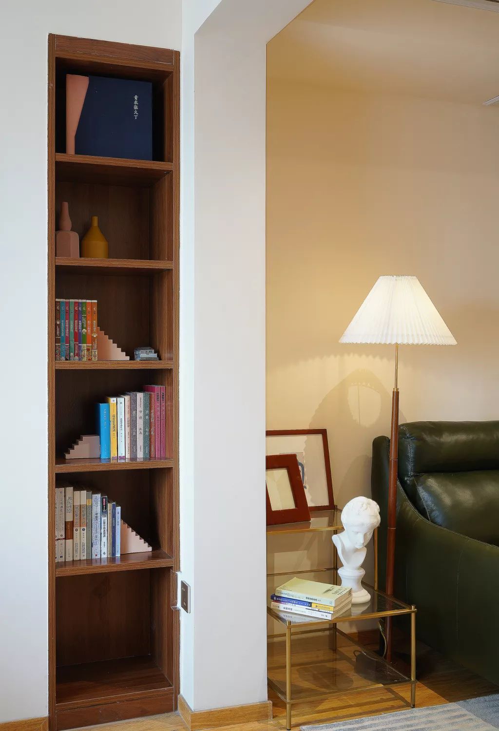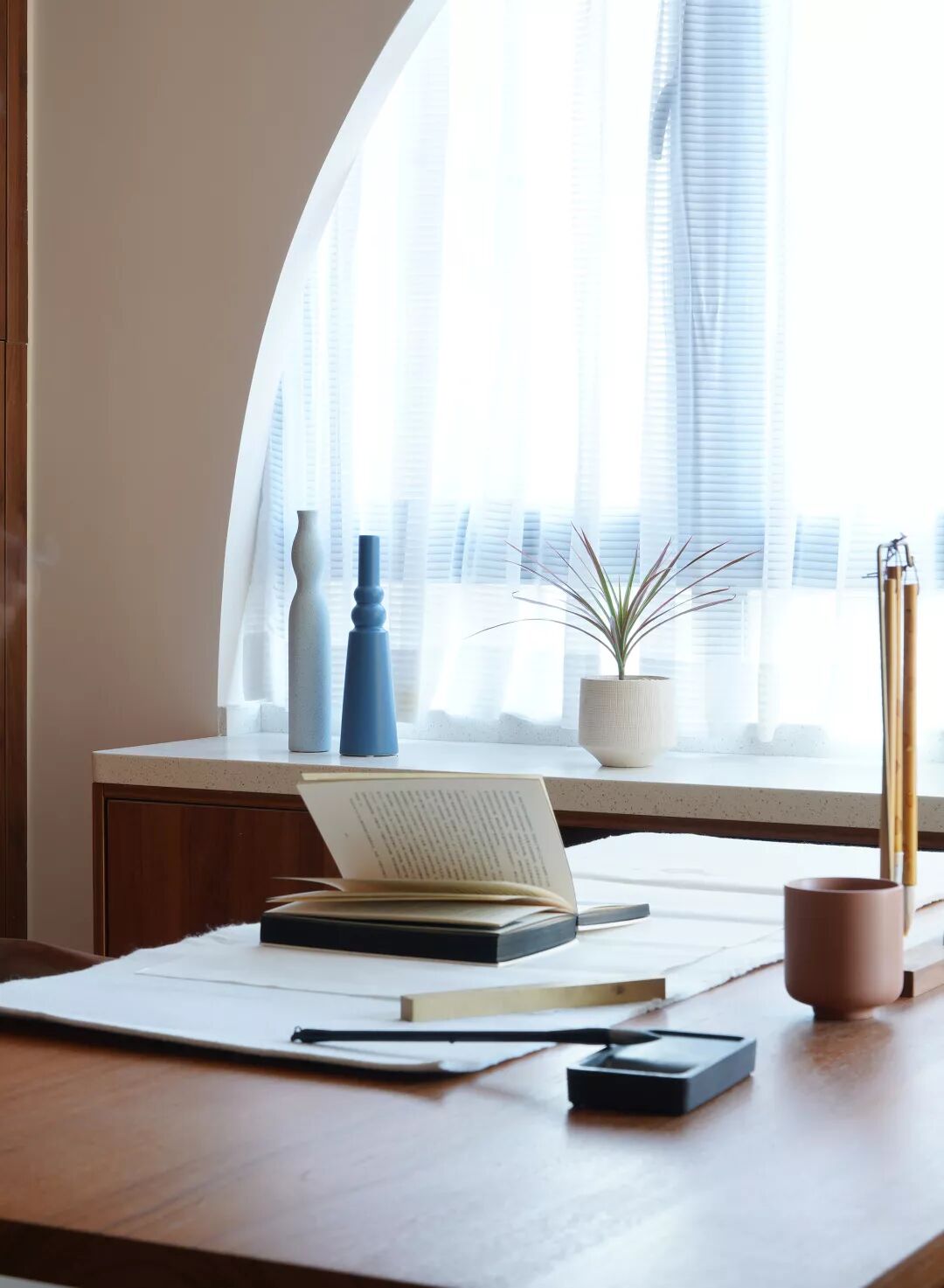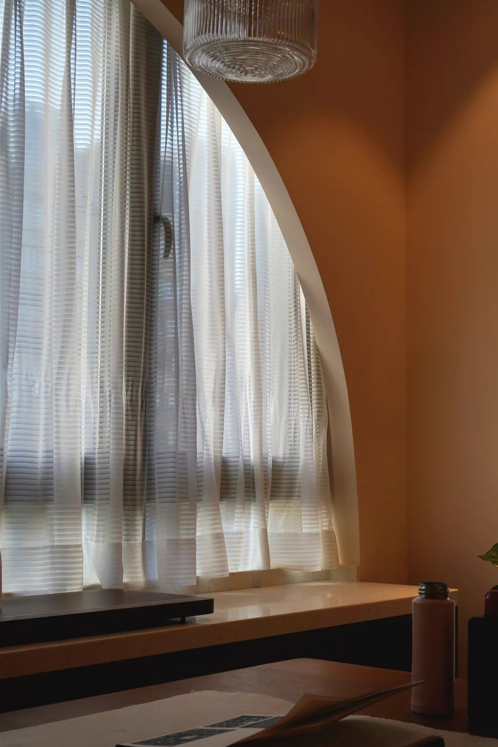 2、北侧阳台打通包进客厅,最大化利用北侧自然光,再利用临窗的采光优势,做成开放式书房;
