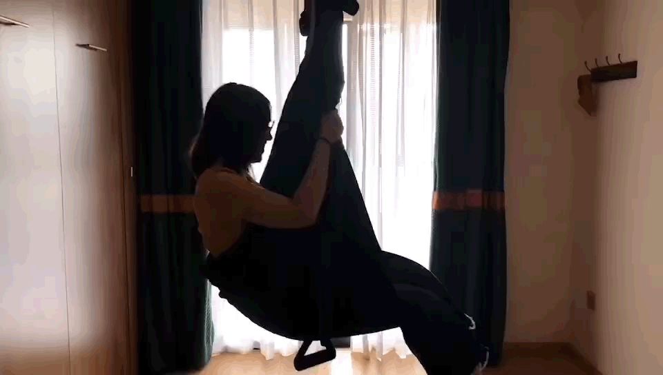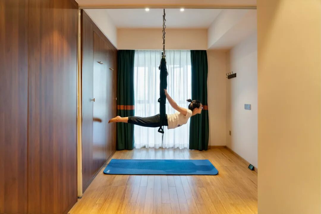 在吊顶预埋吊环挂上瑜伽带就可以。