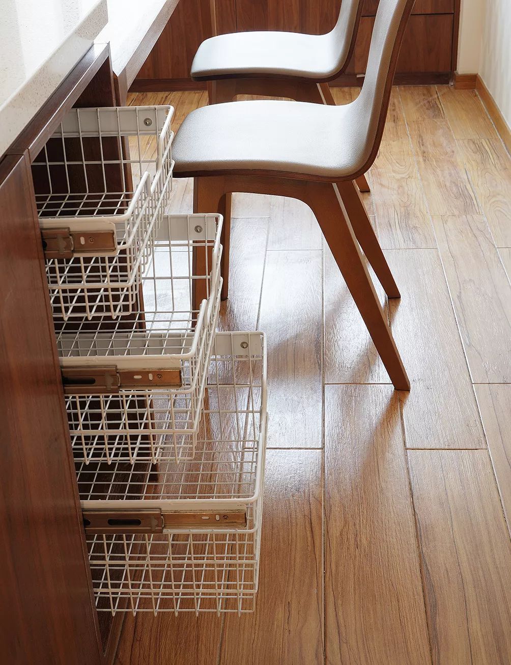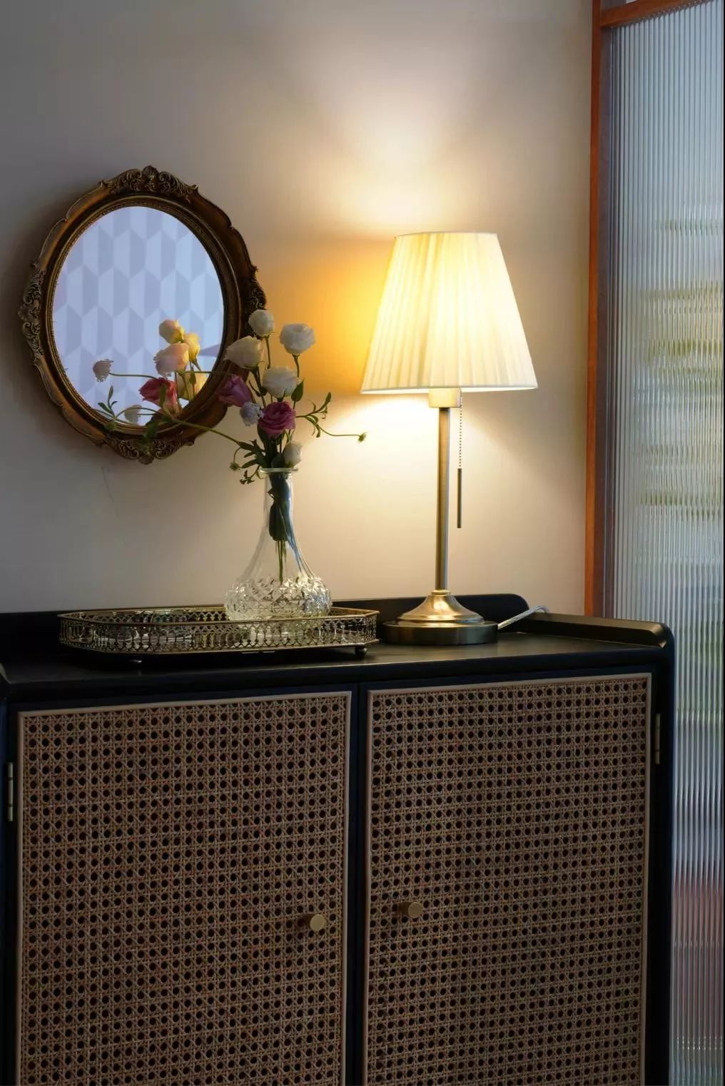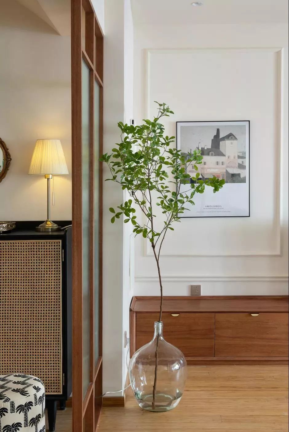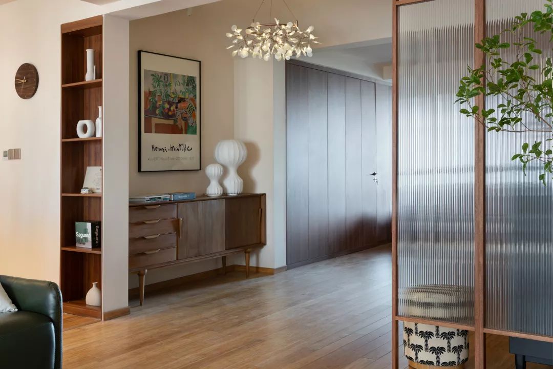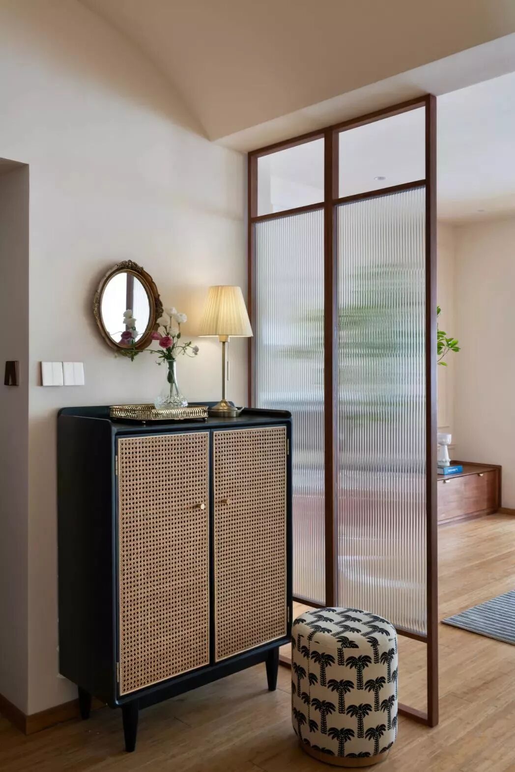 鞋柜旁是长虹玻璃隔断,轻盈通透,