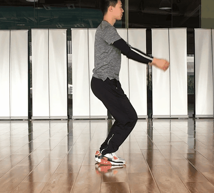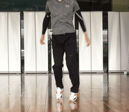 6.起跳练习,跟上一个动作一样,可以快速练习也可以慢速的控制练习。起跳练习在摆腿时要配合主力腿的下蹲上蹬的动作,和摆臂同时进行。这个动作动作也是要把摆腿摆臂形成模式化,不要每一次摆动都在不同的位置。这些动作基本就是在不旋转的情况下比较简单的专项类的活动和练习,每次做反直立旋转,空转之前都要做的一些动作,也是进入陆地跳空转以及1A2A动作的基础动作