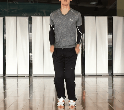 2.跟前一个动作要领是一样的,只不过把手臂变成了对向的前后摆动。转肩的动作尽量不要让胯部转动