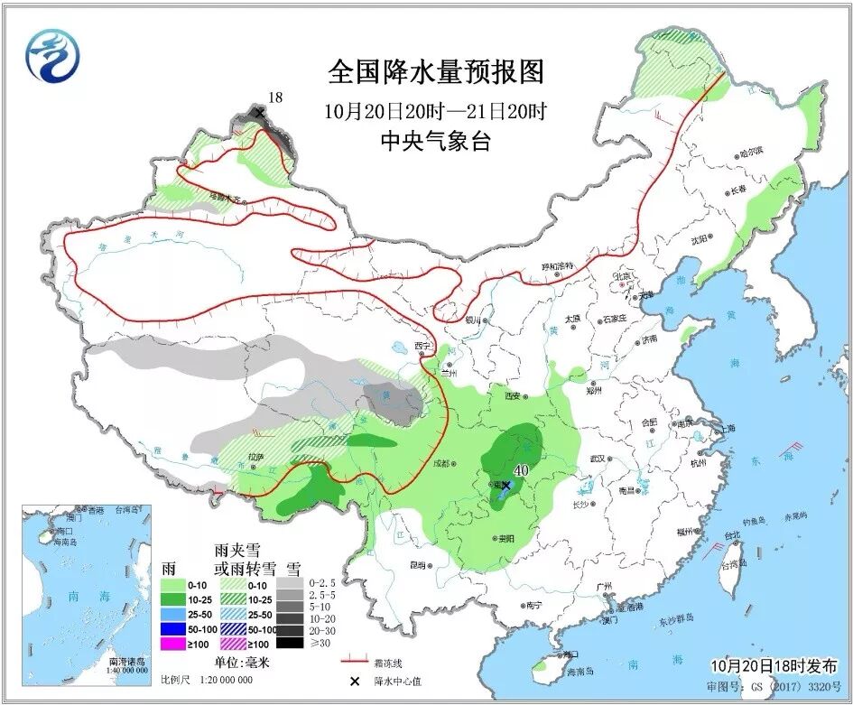 新疆北疆北部和西部、青海南部、西藏北部、内蒙古东北部、黑龙江西北部等地的部分地区有小到中雪或雨夹雪,其中,北疆北部山区有大到暴雪。西藏东南部、陕西南部、四川盆地东部、重庆大部、贵州北部等地的部分地区有中到大雨。
