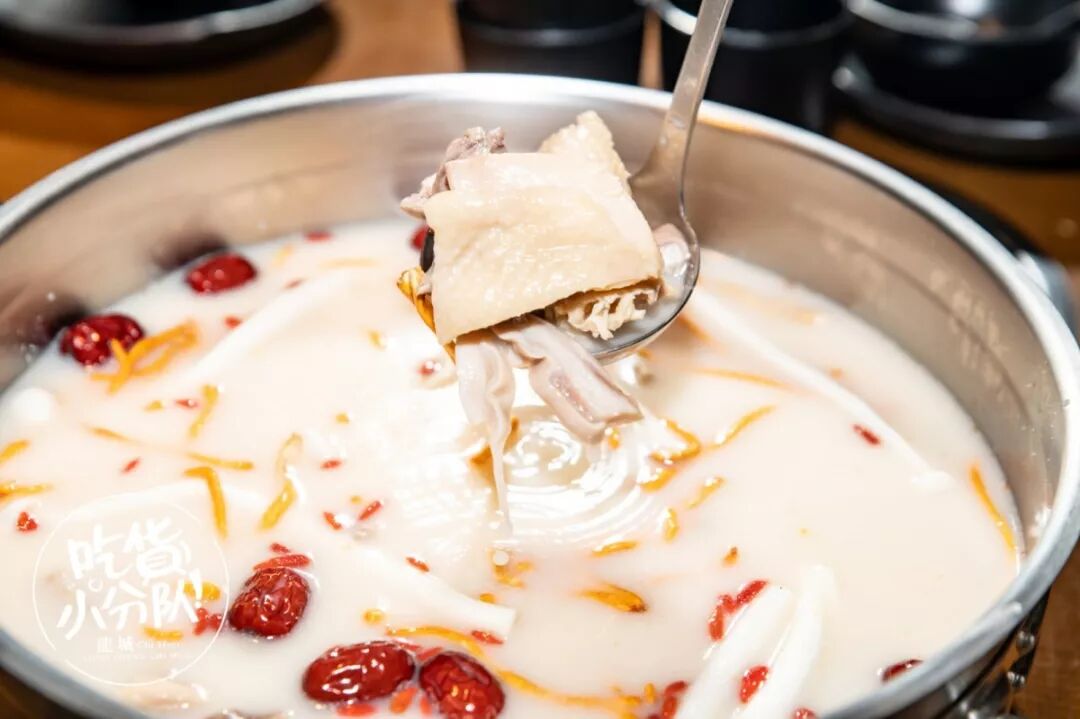 白胡椒猪肚鸡锅里面有着大量的猪肚、老母鸡块和各类野山菌,也可见老板是有多么厚道。
