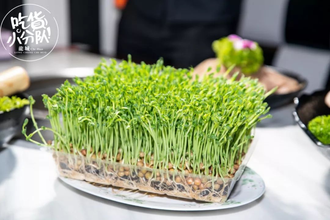 一大盆的活体豆苗,上桌还能看到点点的水珠,同样的现剪现吃,吃起来脆嫩爽口,灵得不得了。