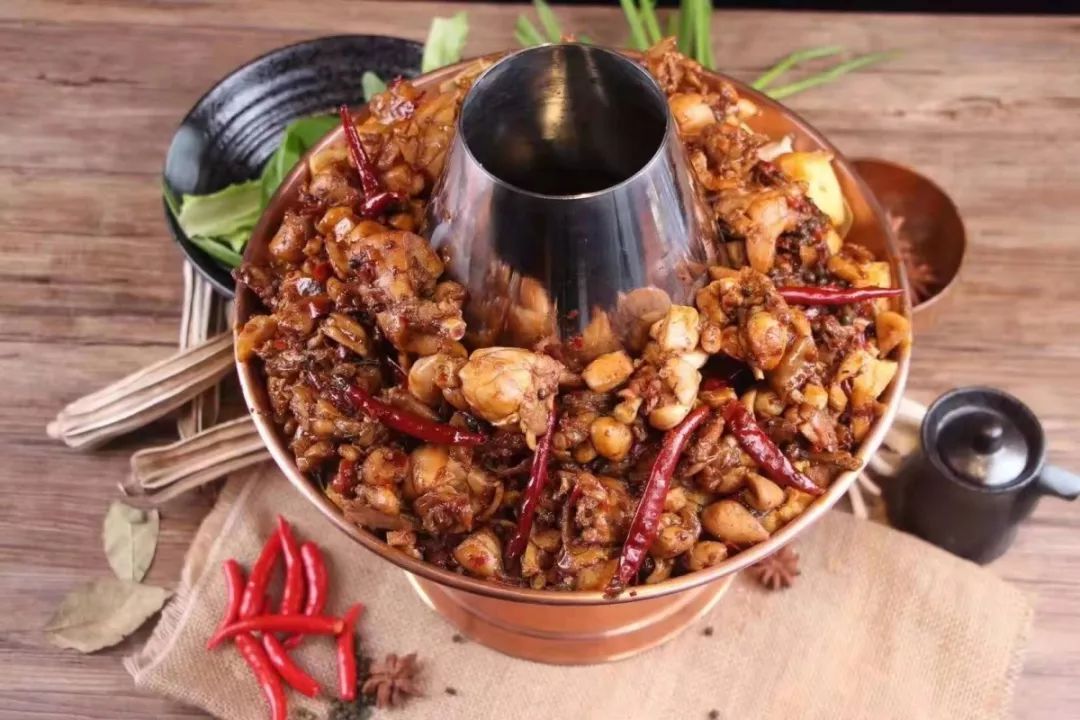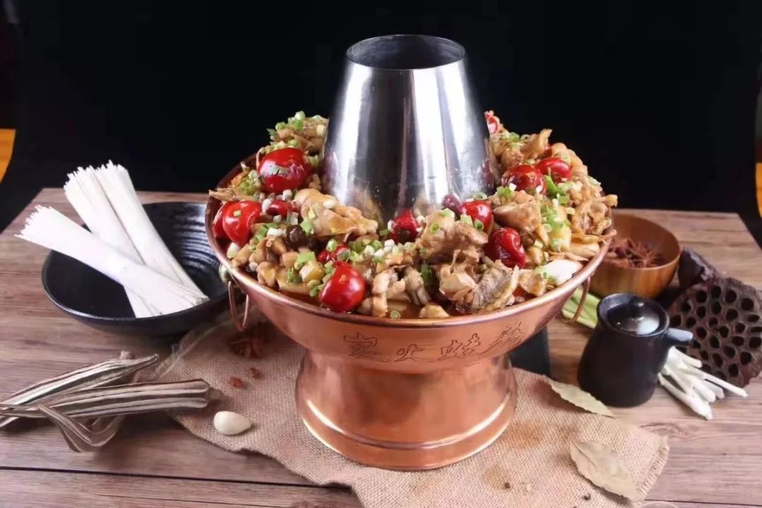 别看只有一层铜锅,牛蛙肉可不少,底下还有丰富的配菜!肉欲满满的牛蛙锅铺得很实在,再多一块儿仿佛都要掉下来!