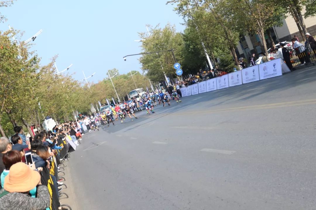 第二个竞赛日则是轮滑马拉松项目的比拼,本次轮滑马拉松比赛的项目分为18KM、10KM以及5KM的迷你马拉松。此外马拉松比赛除了设置各组别的冠、亚、季军外,还增设了迷你马拉松服装创意奖,所有参赛运动员们身着各色队服组成了五彩缤纷的轮滑方队,整齐又绚丽。随着一声发令枪响,运动员们集体秀水广场出发,途经客运码头、贝瓯驿站,最终到达许源加油站完成全部的比赛。
