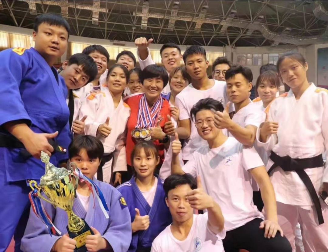 在刚刚结束的2019年广东省柔道公开赛上,由我院竞体系7名学生、体艺系14名学生组成的学院柔道代表队,经过为期两天的顽强拼搏,勇夺2金、6银、11铜。其中,高中组获得1金、3银、4铜,并勇夺团体总分第一名。成年组获得1金、3银、7铜,1个第五名,1个第七名。