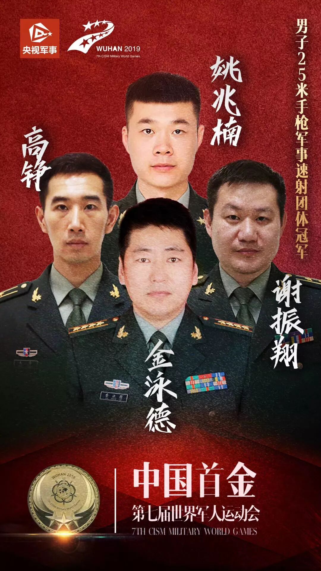 男子25米手枪军事速射团体项目是军运会独有的射击项目,也是中国队的传统优势项目。在该项决赛中,由八一射击队副队长兼教练金泳德领衔的中国队以总成绩1747环获得冠军。这也是本届军运会产生的首枚金牌。