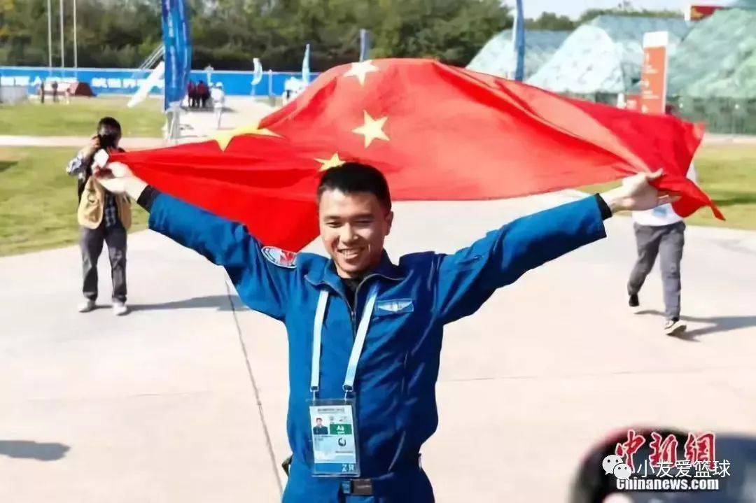 图为中国队选手廖伟华夺冠后挥舞国旗。