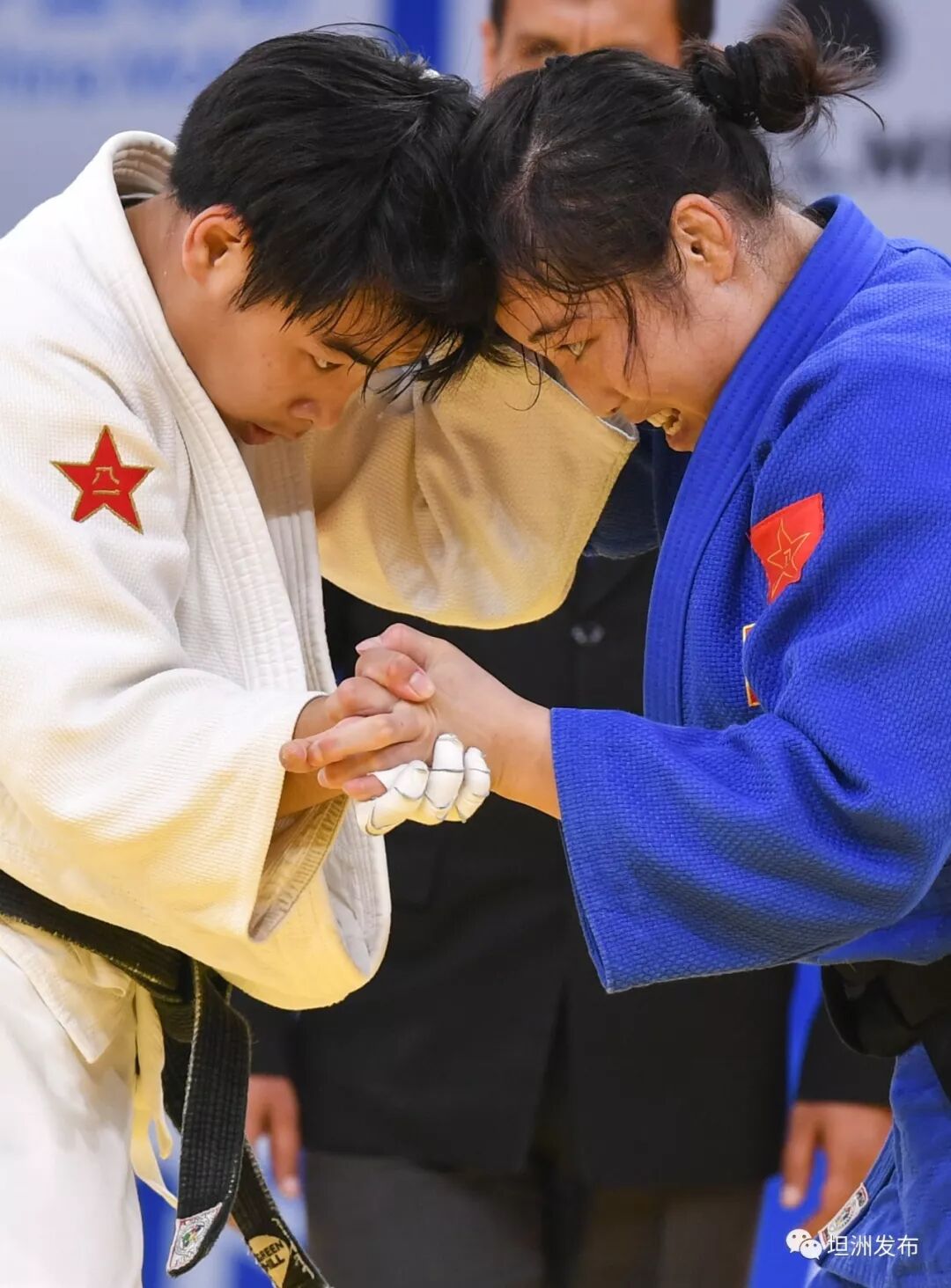 ▲在军运会柔道项目女子52公斤级决赛中,中国选手黄丽茹(右)获得冠军。