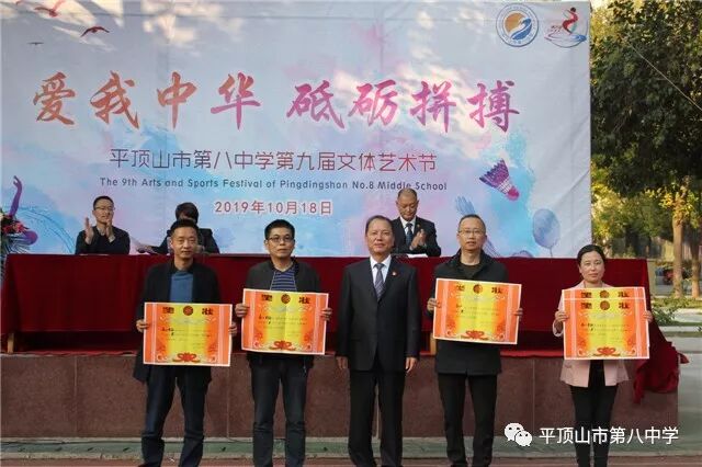 19日下午闭幕式上,校长林亚南等校领导为在文体艺术节上获奖的师生集体及个人颁发奖品和证书。