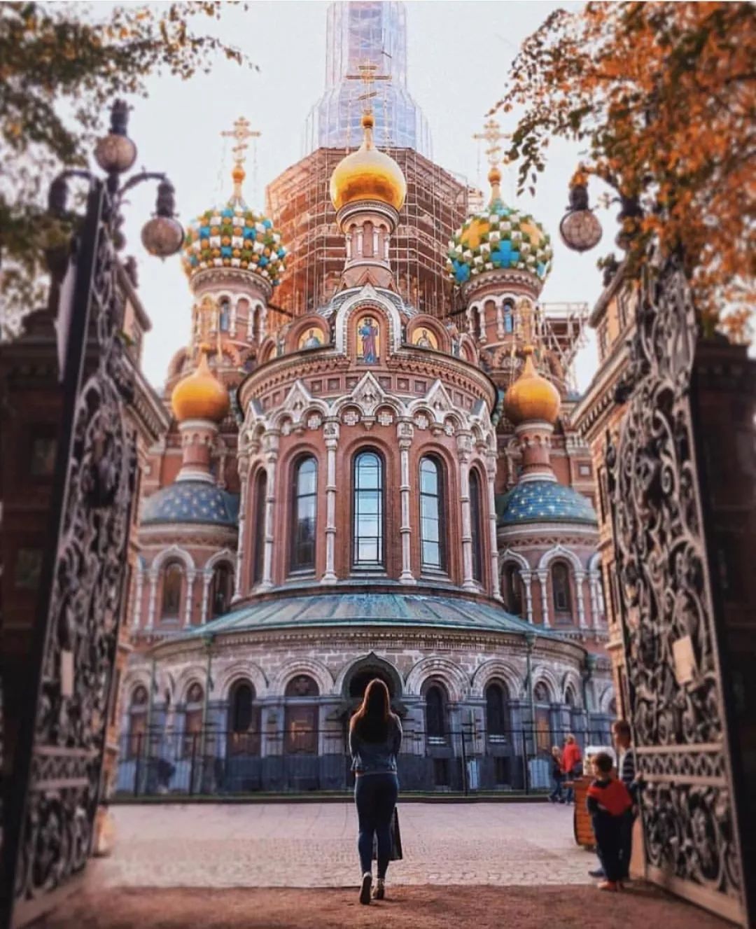 【滴血教堂】(外观,约20分钟)为纪念沙皇亚历山大二世1881年在此遇刺身亡而建,此教堂是世界上建筑物内外马赛克镶嵌面积最大的建筑,被称为十九世纪俄罗斯建筑的典范。