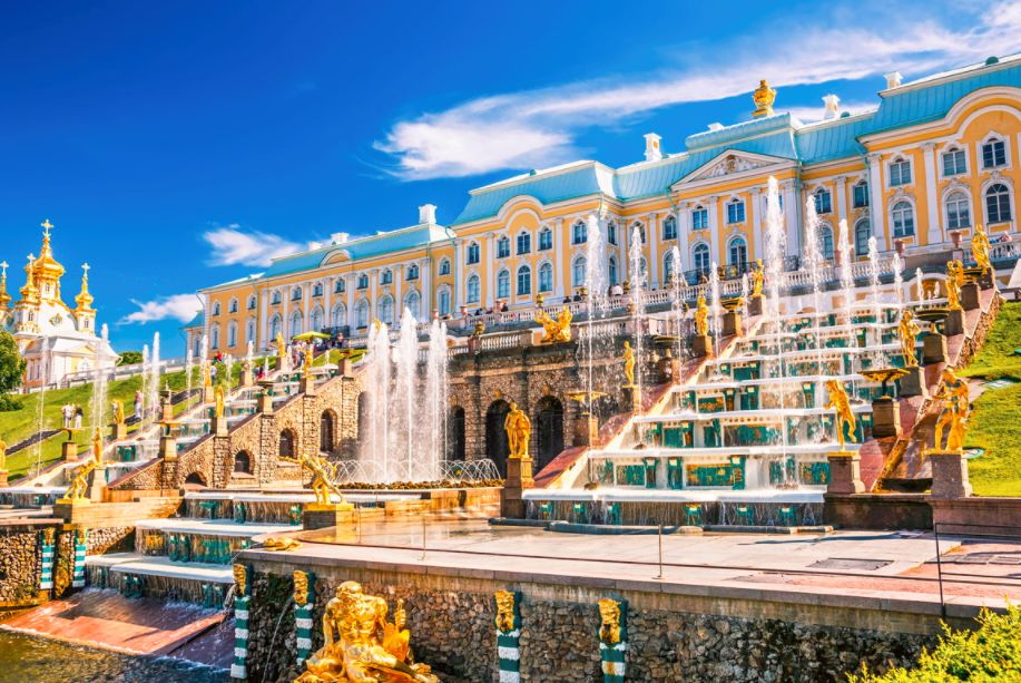 上午:【普希金城—叶卡捷琳娜花园和宫殿】(入内参观约2小时)沙皇最喜爱的夏季行宫之一,因诗人普希金1811-1817年曾在这里读书,1937年在诗人诞辰100周年之际,皇村更名为普希金城,园内法式花园的几何图案和英式花园的浑然天成,让人流连其中。叶卡捷琳娜宫殿陈列着各式古代家具和精美的装饰品,尤其是宫内的“琥珀厅”,用六吨琥珀和马赛克镶嵌装饰而成,让人叹为观止。