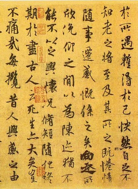 《蘭亭集序》是修褉活動的記錄文稿,王羲之應該是“無意作書”的,而且略有微醉,所以序文有多處修正塗改,行距也錯落不齊,但這些並不影響真情流露。