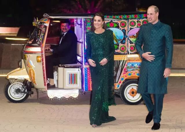 当晚的晚宴,王子和王妃乘坐一辆嘟嘟车参加晚宴。王子换上了巴基斯坦的传统服装“舍瓦尼”,王妃则是一袭长裙。