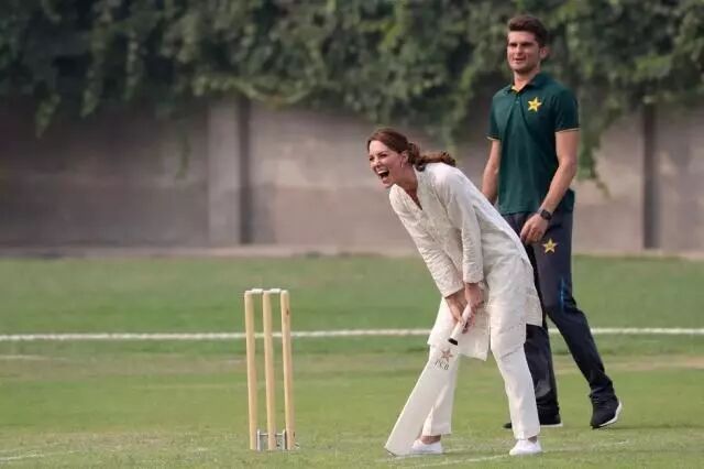 第四天,夫妇二人前往巴基斯坦板球学院进行户外活动 ,王妃穿着当地传统服饰Shalwar Kameez。