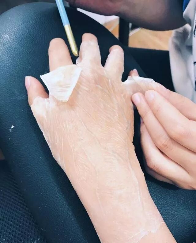 不仅如此,为了更好地演绎出黛绮丝“金花婆婆”时的扮相,杨明娜全脸倒模不说,甚至连双手也精细地做了倒模。每天她都需要提前到片场把“假皮”贴好。这种特效技术虽然真实,但是却对皮肤有很大伤害,许多年龄稍长的女艺人都不愿意接这类角色。而杨明娜却满不在乎,她认为:“工欲善其事,必先利其器”,演员就应该为角色有所牺牲。
