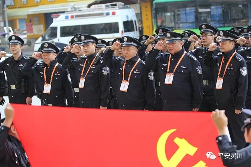 10月21日上午7时40分,灵川公安170余名警力在县局门口集结进行战前动员,在党旗前庄严宣誓,进一步增强参战人员的责任感和使命感。