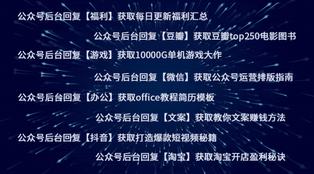 ?每日更新,电影资源,羊毛福利,精彩视频,实用网站。授人以鱼不如授人以渔,本号只分享资源而不提供资源(如果有那个闲钱提供会员,红包等,又何必去做公众号呢?),获取本号福利资源方法就在每日文章及你所看文章的“领取”部分(上方),请认真查看该文章“说明”-“图片”-“领取”即可获取,或,①点击公众号右上方“···”②点击右上方“搜索”③输入你想找的“资源”也可获取,本号从不强迫粉丝关注,去留随意,因此请不要再回复诸如:腾讯会员,XX会员,红包,领取……等关键词,谢谢!