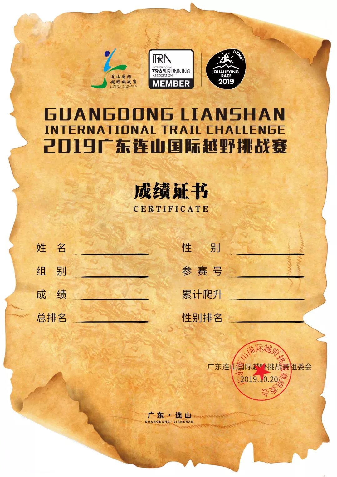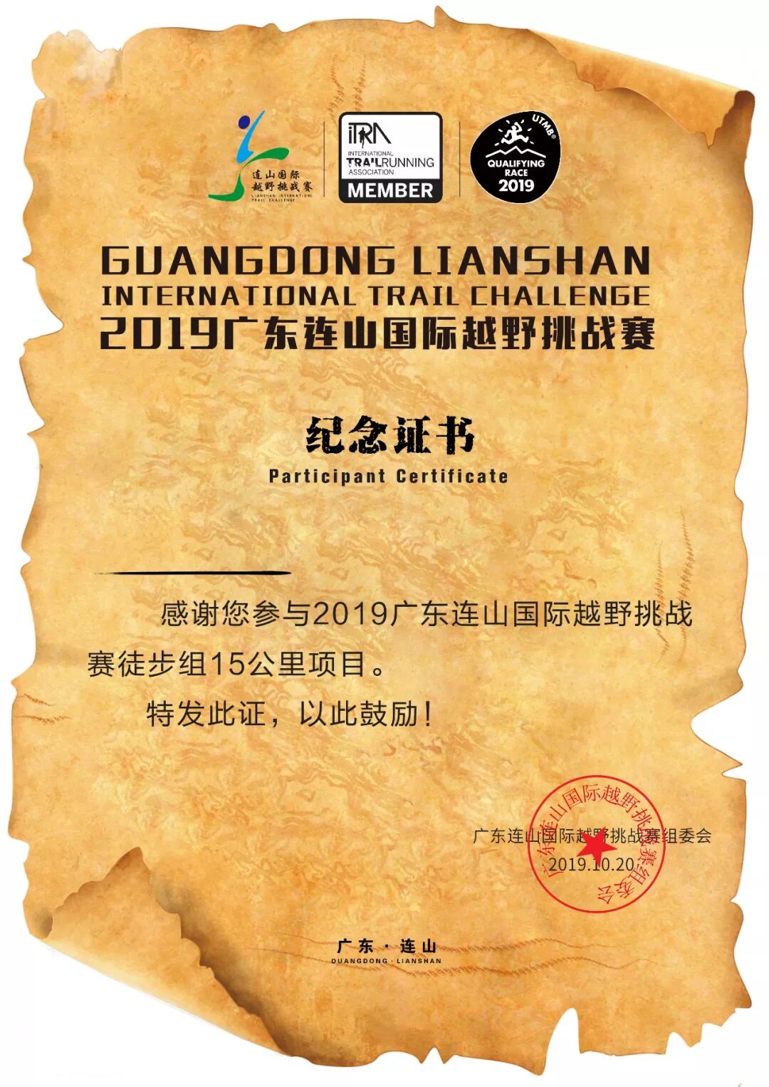 证书丨2019广东连山国际越野挑战赛完赛证书下载